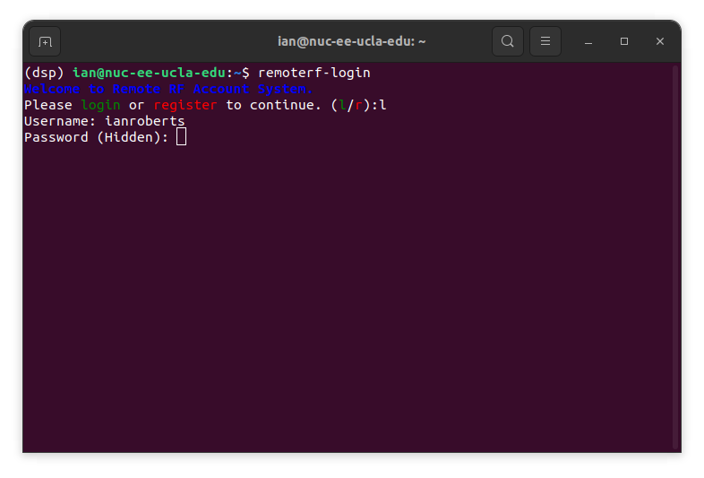 remoterf-loginIt will ask you to either enter l to login or r to register.